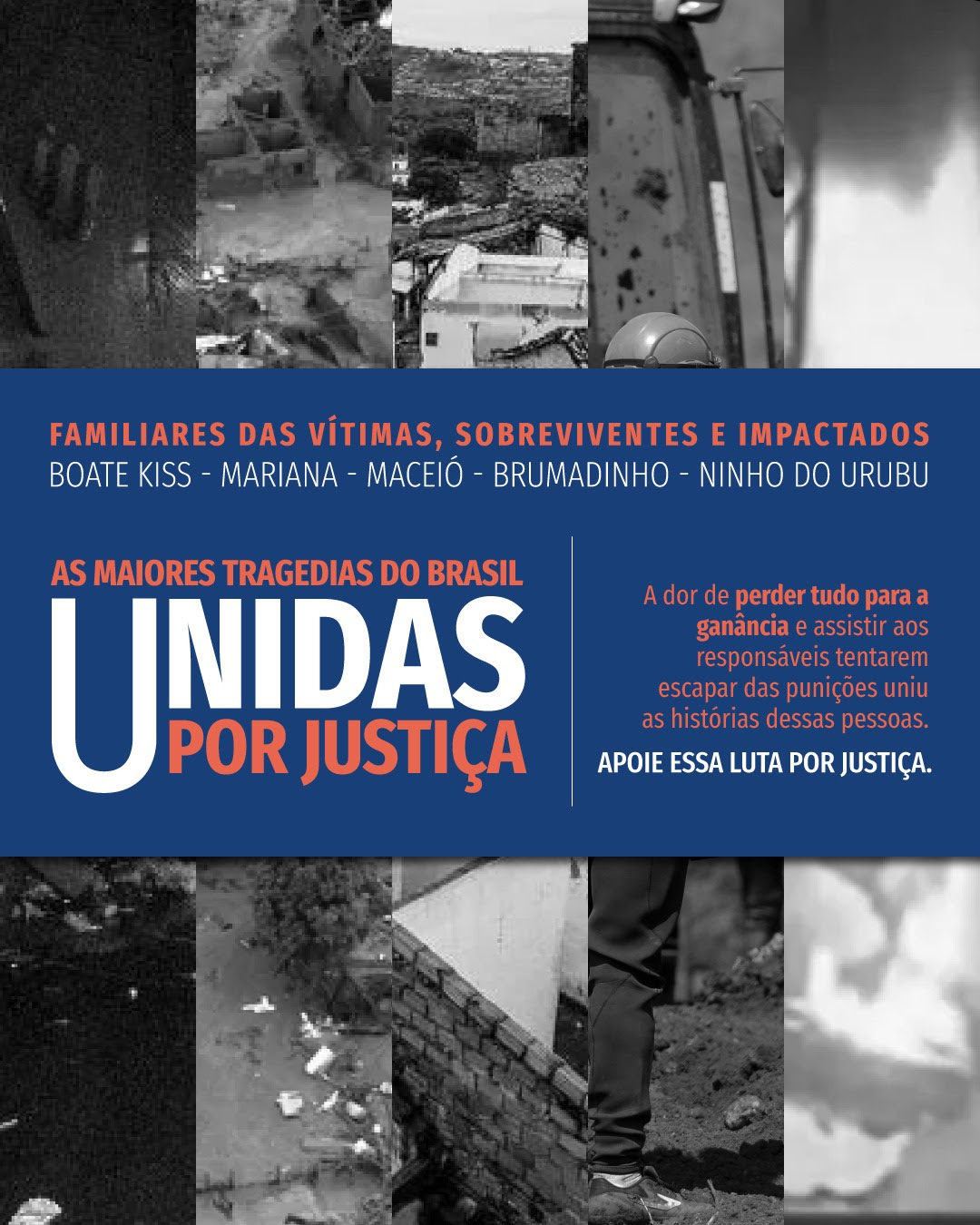 O encontro dará voz a representantes das vítimas dos rompimentos das barragens da Vale, em Brumadinho (2019), e da Vale e da BHP, em Mariana (2015); do afundamento causado pela Braskem com a exploração do subsolo em Maceió (2018); e dos incêndios da Boate Kiss (2013) e do alojamento Ninho do Urubu, do Flamengo, no Rio de Janeiro (2019).